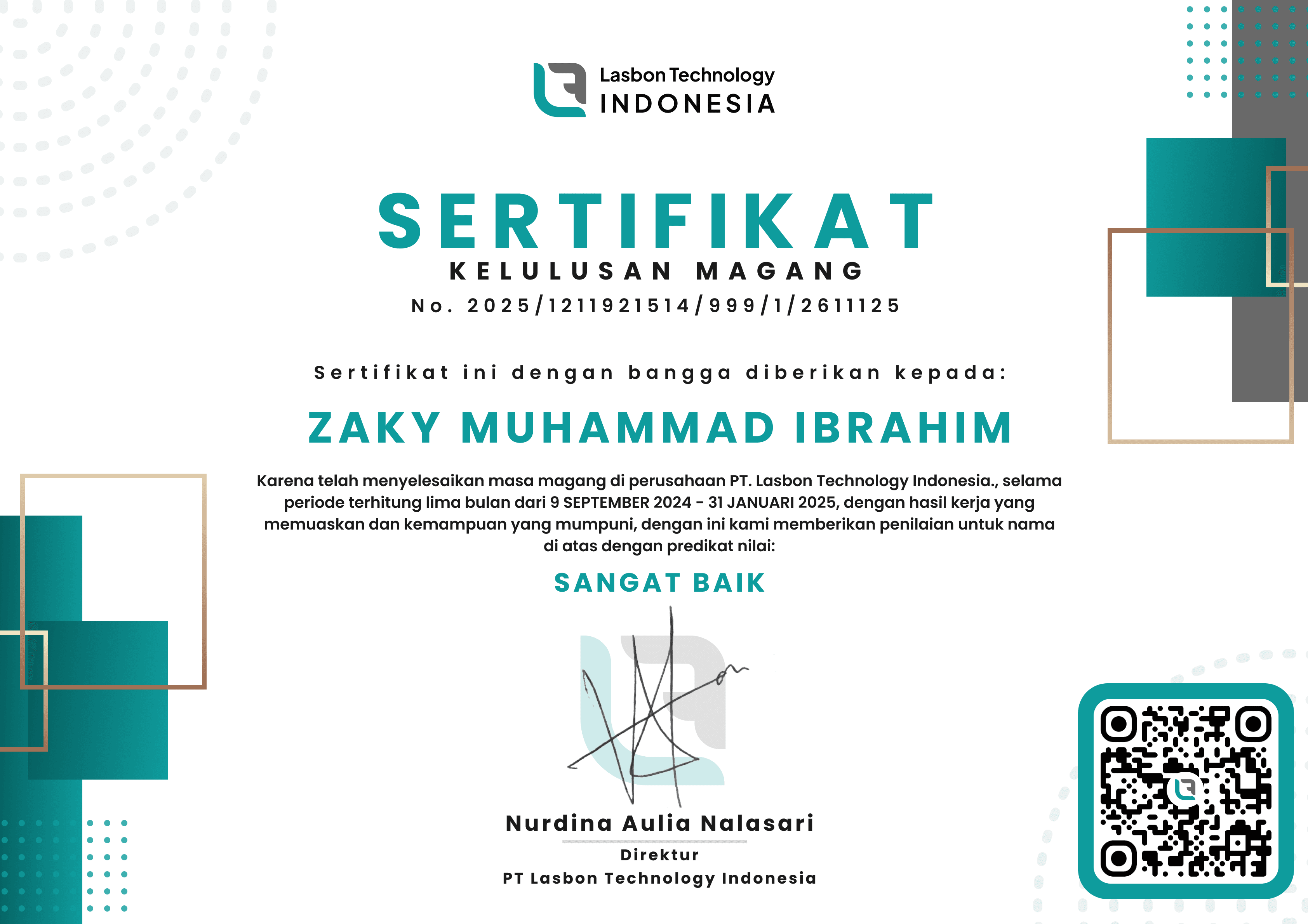 Interenshi Program Lasbontech adalah sertifikasi dari Lasbon Technology ketika peserta magang menyelesaikan program magang selama waktu yang sudah ditentukan.
